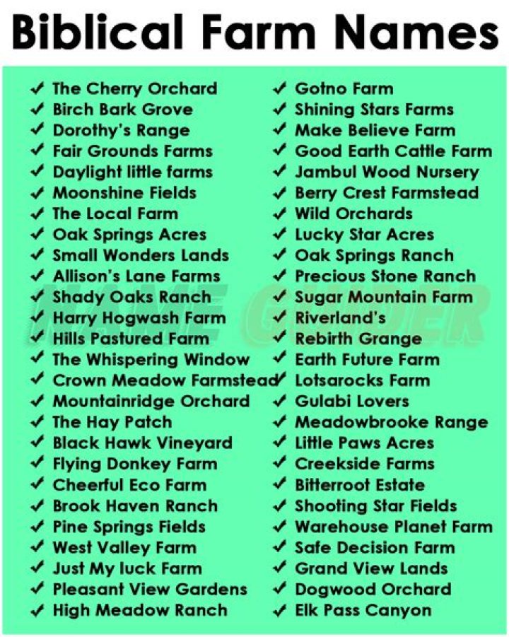 Summary: Religious farm names are a unique and meaningful way for farmers to express their faith and values. They can also be a way to connect with a community of like-minded individuals. When choosing a religious farm name, it is important to consider factors such as your personal beliefs, your family history, and the community in which you live.
