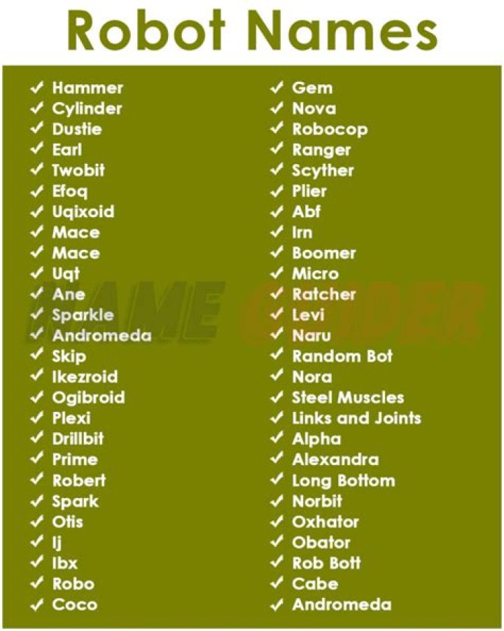 Here are a few examples of good robot names: