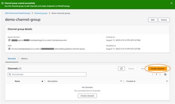 Create a channel group to group your channels and origin endpoints. A channel group is the top-level resource that consists of channels and origin endpoints that are associated with it and that provides predictable URLs for stream delivery. All channels and origin endpoints within the channel group are guaranteed to share the DNS. You can create only one channel group with each request.
