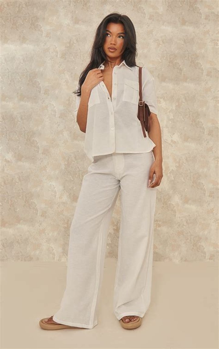 White linen pants outfit, Wide leg linen trousers, Linen pants outfit
