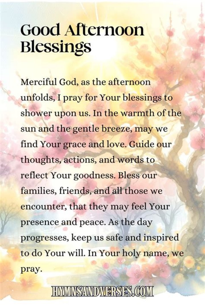 - Religious Significance: Afternoon blessing prayers are an important part of many different religions, including Christianity, Islam, Judaism, Hinduism, and Buddhism. In each of these traditions, these prayers are seen as a way to connect with God or a higher power, and to ask for guidance and protection. Afternoon blessing prayers can also be a way to express gratitude for the blessings that we have received.