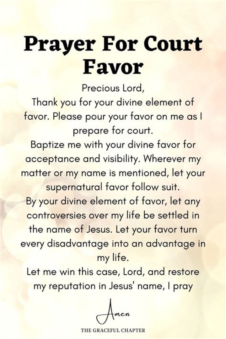 - Accountability and Responsibility: Prayer for favor in court can also encompass a plea for accountability and responsibility, acknowledging that justice sometimes requires consequences for wrongdoing. Individuals may pray for the guilty to be held responsible for their actions while also seeking mercy and compassion for those who have made mistakes.