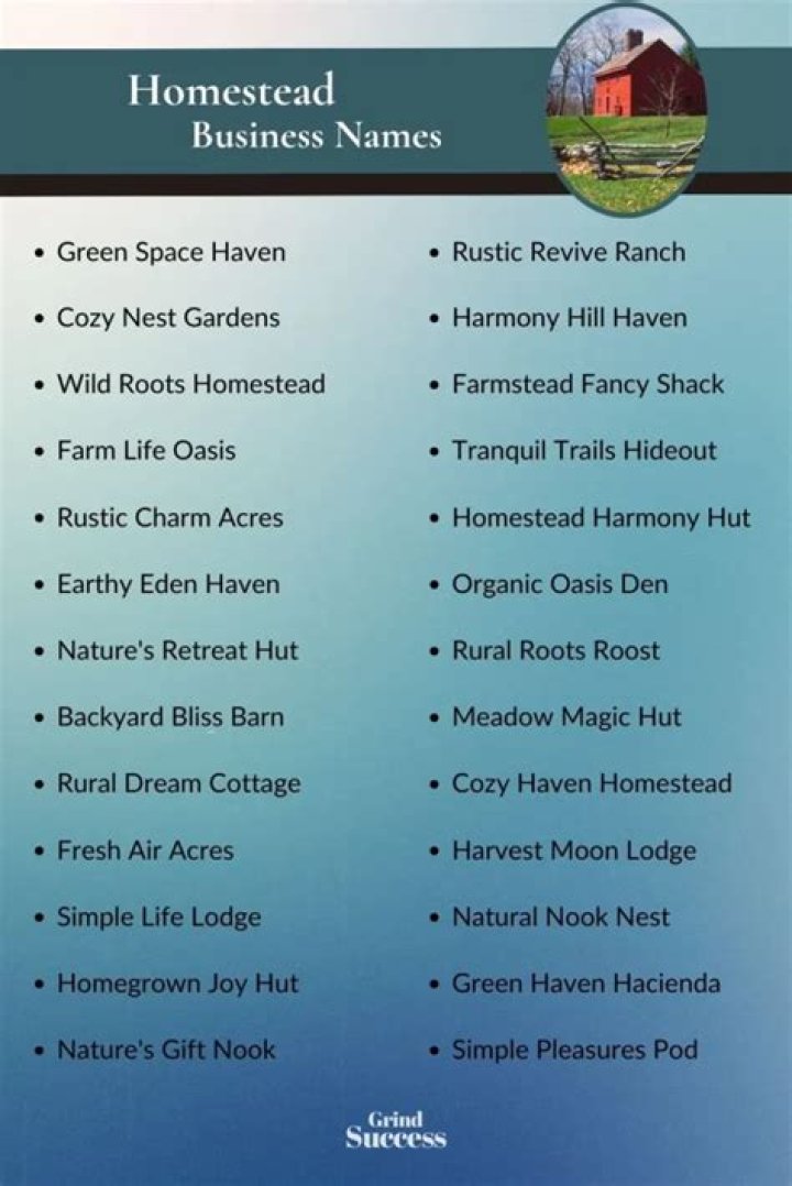 - Mixed Use: If the homestead serves multiple purposes, consider a name that encompasses the various activities, such as "Homestead Haven" or "Tranquil Acres."