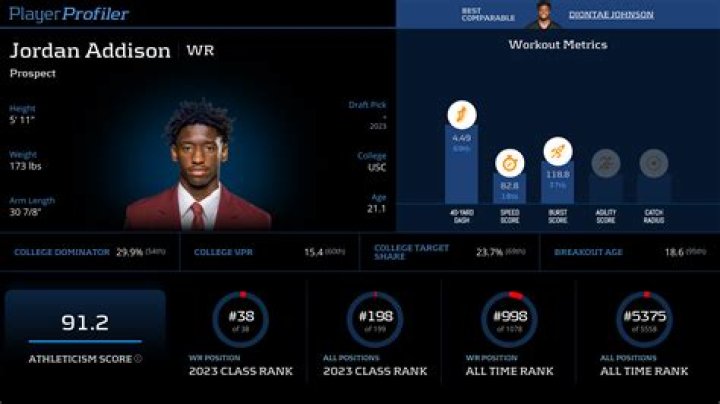 Jordan Addison PlayerProfiler is an advanced analytics platform that provides in-depth player analysis and projections for fantasy football. It uses a com...